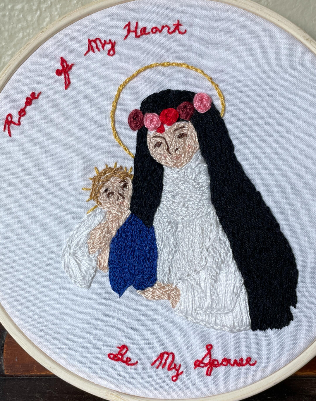 Hello, my name is Melanie. I am a hand embroidery artist, specializing in Catholic artwork. I began hand embroidery back in 2020, for therapeutic reasons. I already had had an Instagram where I shared my reflections and poetry that was mostly religious. That year, I became inspired by both embroidery and Catholic artists and decided to share my art journey with others. I later opened up my Etsy shop in October 2022. I hope that every stitch can be a prayer, and to share beauty whenever possible. Please see my portfolio for what I can make for you. Thank you!